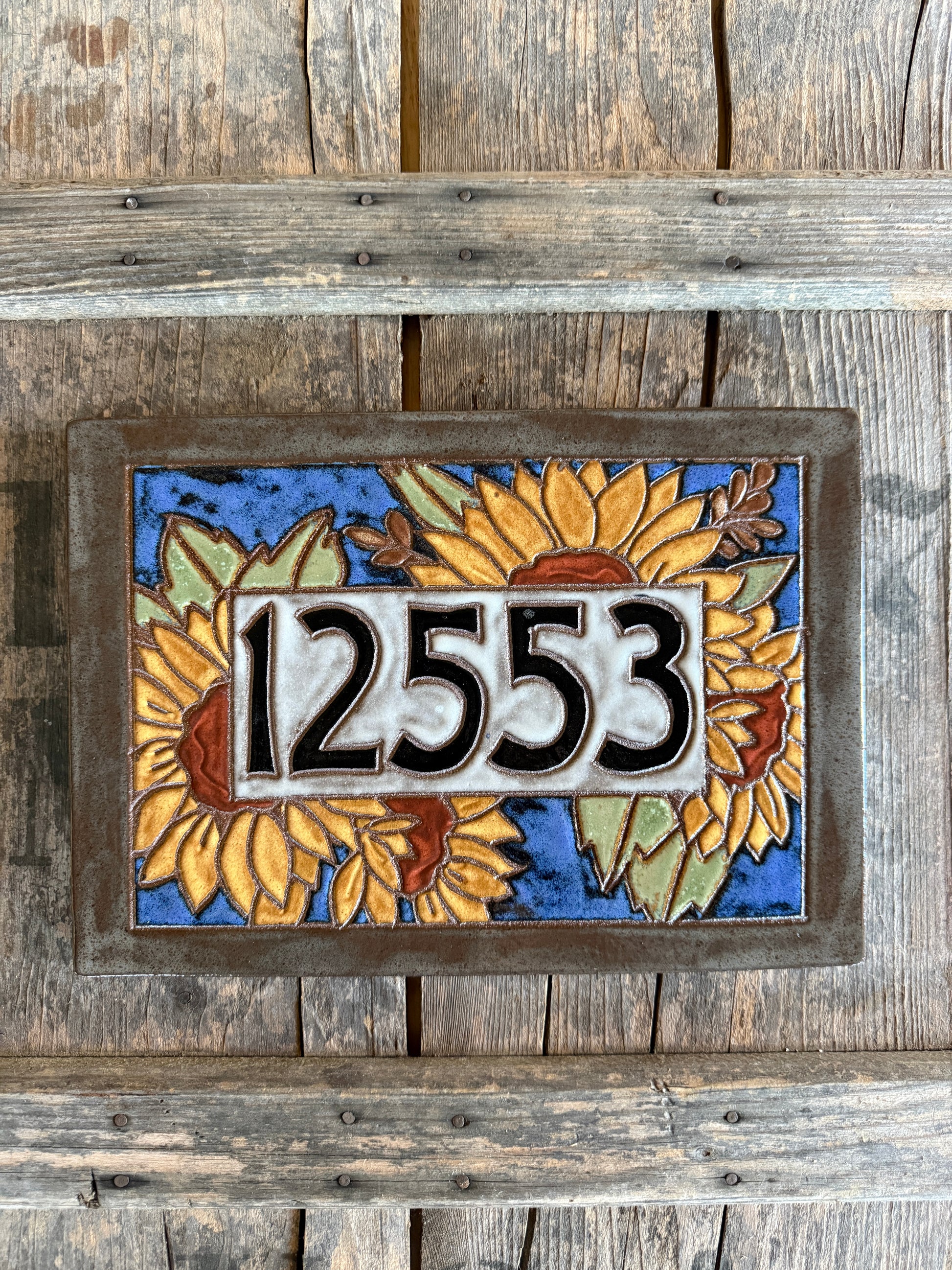 Made To Order Custom Sunflower Address House Sign - Custom Floral House Number Tile - One of a Kind Address Plaque - House Warming Gift Name Sign